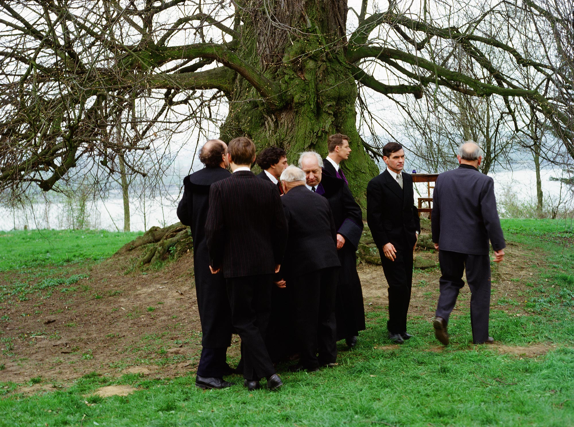 The people in the village – they too speak off-camera – know all about it. Zechmeister was poisoned, that is clear from the fact that all his hair eventually fell out. A female doctor cannot confirm any such hair loss. Zechmeisterʼs wife is arrested on suspicion of murder – she remains on the side of the camera, is therefore invisible, with the film-maker on her side. Maria Zechmeister speaks for herself, looking back at her case from 1981. She does not directly defend herself, since the film takes as the subject of its investigation the failure of the defence in a historical trial. This trial is documented and at the same time reopened. The court gathers together with Angela Summereder beneath a large tree, a world tree: judge, prosecuting counsel, defence counsel, jury – a magistrate’s court and archaic village justice, which nevertheless speaks in the name of the Republic.