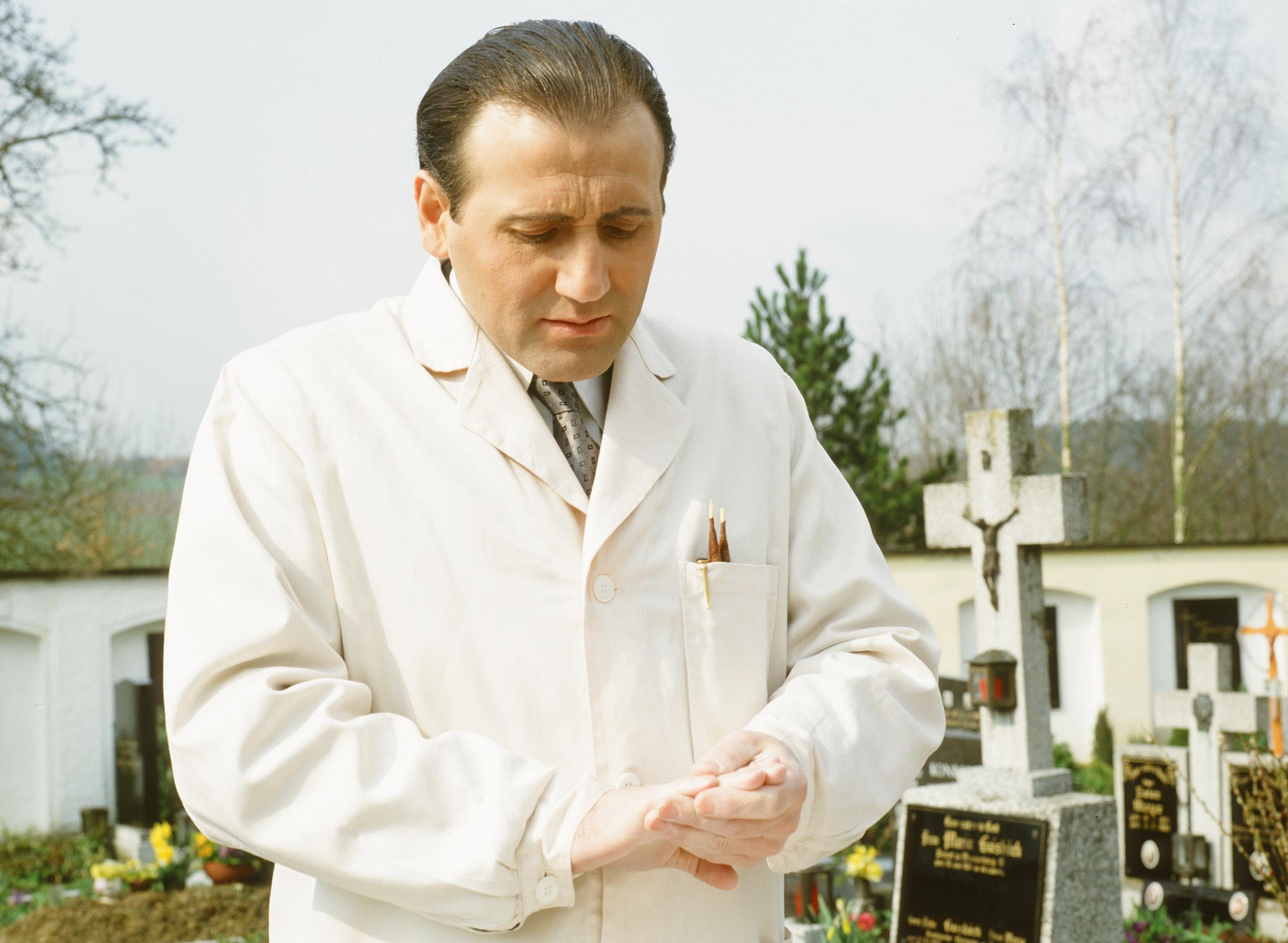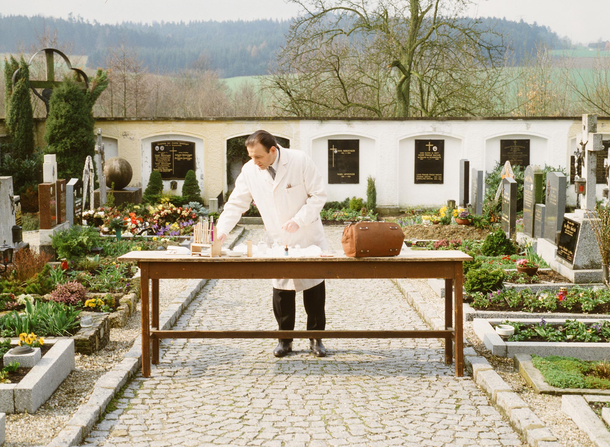 The people who are heard in Zechmeister hardly enter into the picture at all. When speaking, they alternate between their familiar Upper Austrian dialect and formal high German, which they are repeatedly unable to maintain for long. In between, Angela Summereder lets the camera simply travel across a field or along the River Inn, while evidence is being read out. The poison thallium is found in Zechmeister’s exhumed body, yet the last dose must have been administered to him when he was already in hospital. His wife did not visit him in hospital.